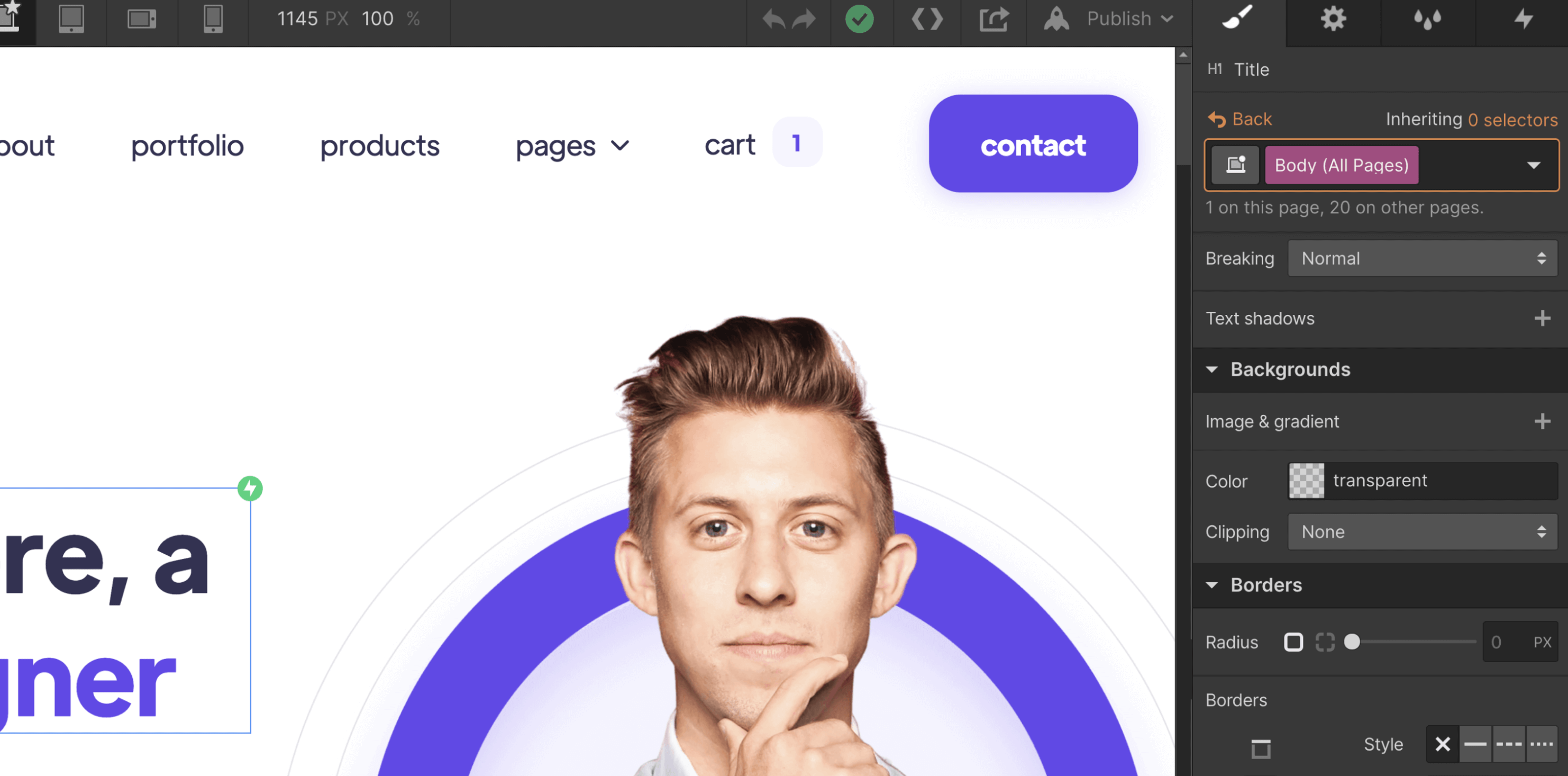 Everytime you make a change (for example, you create a new section design), it's a good practice to go to your Viewport top navigation and see how it looks on Tablet and Mobile.