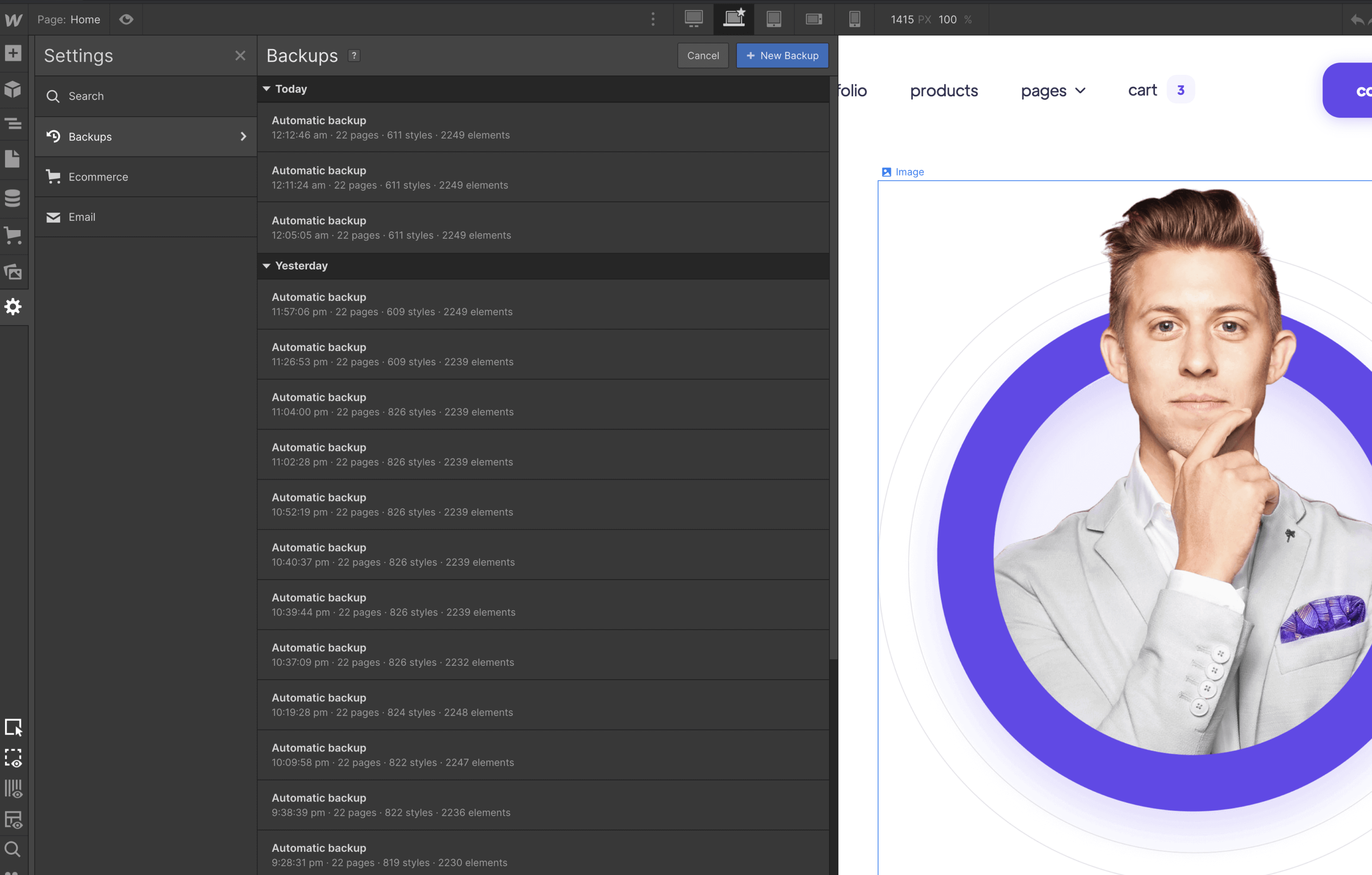 If something goes wrong, for example, if you are not liking where the website is going to, if you deleted some critical classes that were required to make the Template look nice, or if you just want to go to a previous version for any reason, you can always go to the Backups section.